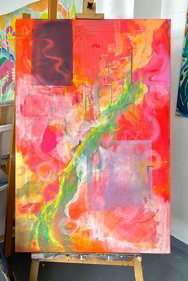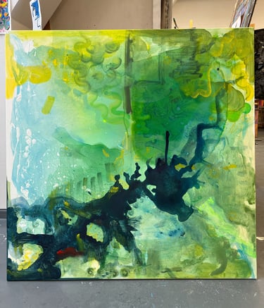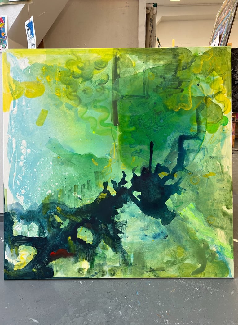 This is one of my intuitive paintings. It is held in green and blue- yellow colors.