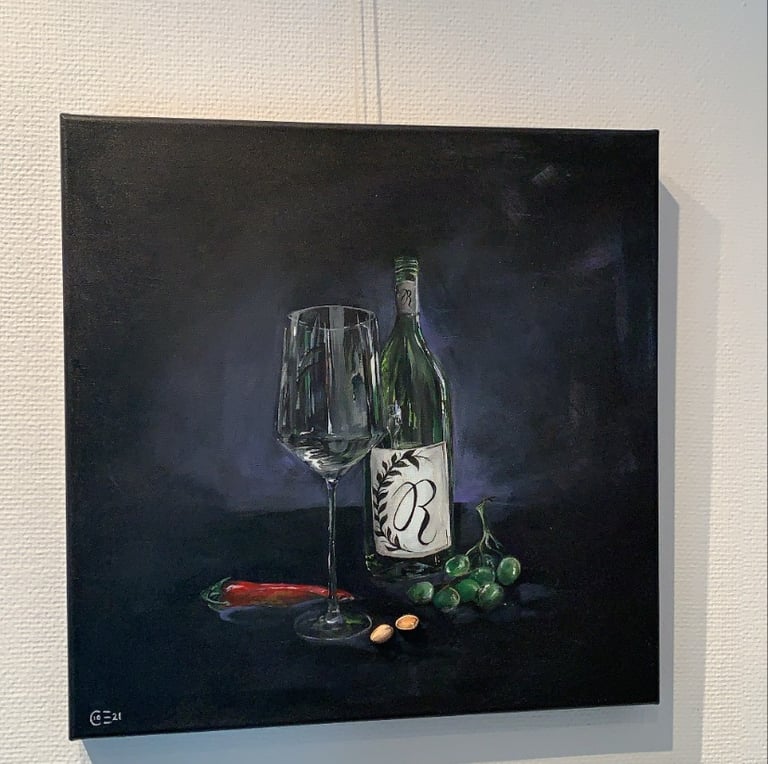 This painting I did in 2021. Still life of wine bottle